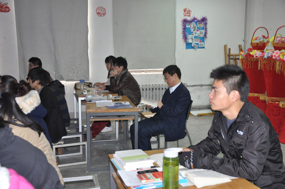 2011年11月9日,副院长张云龙来到长清校区教学楼人文艺术学院教室,听取了姚丹老师的《美学原理》专业基础课。 听课结束之后,副院长张云龙和姚丹老师在教师休息室进行了深入交流。他首先对姚丹老师授课总体效果给予肯定。同时建议合理安排讲课进度,突出重点,使学生对本门课有一个完整的掌握和理解;结合学生的理解能力,按照课程的逻辑顺序由浅入深安排课程内容;为了让学生尽可能深入地掌握专业知识,应该采用多种形式对学生进行考核。