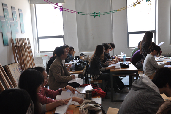 2011年4月27日(周三)上午,副院长刁在祥来到永利官网长清校区人文艺术学院教室,听取了王红莲老师的《广告创意与表现》专业课。 通过和同学们一起认真地听课,副院长刁在祥认为,王红莲老师备课非常充分,教学方法也很灵活,并且能够调动同学们的学习积极性,教学的效果比较不错。同时,他指出,学生的上课迟到现象比较普遍,要培养学生的守时观念和意识。老师和学生都要提前进入课堂,积极投入到教和学的状态当中去。