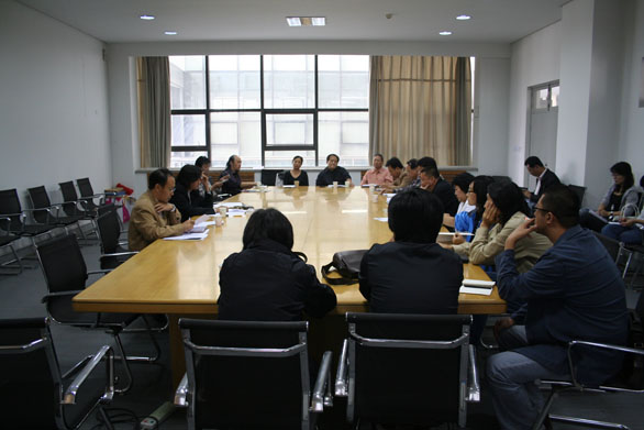 董占军处长对教研室主任培训、毕业资格预审和2010年设计艺术博览会等工作作出安排。2010年设计艺术博览会将于2010年5月1-4日,在舜耕国际会展中心举行,建议视觉传达设计学院、工业设计学院将博览会的视觉形象方案、展示设计方案纳入到相关专业毕业设计中去,让学生参与设计展览方案,然后深化,选优采用。