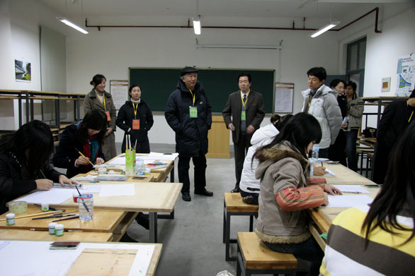测试开始前,评估专家认真检查了考生的学生证、准考证等考试证件。评估专家组组长、清华大学美术学院杨永善教授主持了7场技能测试,测试题目包括针对视觉传达设计学院学生的《设计〈鲁迅小说集〉封面》和《用黑体字写出“字体设计”》、针对工业设计学院学生的《设计一个书桌上的台灯》、针对造型艺术学院学生的《男青年头像写生、动态速写》、针对现代手工艺术学院学生的《设计一件插花用器》和《设计一幅窗帘装饰图案》、针对数字艺术与传媒学院学生的《默写一幅孙悟空的动画造型》,测试内容主要考察设计、美术相关专业学生的设计能力和创意水平。