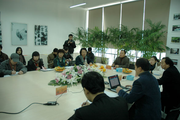 视觉传达设计学院院长石增泉从学院基本概况、指导思想与教学思路、教学建设与教学改革、教学管理与质量控制、学术交流与国际合作、教学效果等几个方面向评估专家作了详细汇报。石增泉重点讲述了该学院近年来所取得的学术科研成果,专著、教材、论文,创作科研成果和文化创意产业成果。针对教学工作,石增泉院长讲到,视觉传达设计学院确立了合理的教学基本定位,积极进行教学改革,建立了注重个性发展的1+3教学结构模式、规划完成的2+2(团队式)工作室教学模式。同时,该学院充分利用实验室与教学实习基地等实践教学条件,注重培养学生的实践能力,严格贯彻和落实学校“实践教学型”定位。