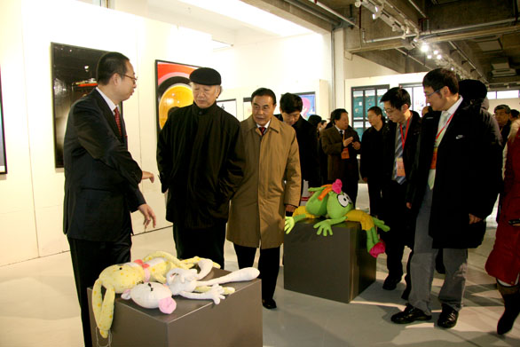 在美术馆,专家们饶有兴致地观看了正在美术馆展出的专题展览。“2005—2007届毕业生优秀作品展”全面展示了永利官网近几年来毕业生的优秀作品,其中包括永利官网各院系历届毕业生的绘画、设计、摄影、雕塑、服装、手工艺等作品;“校外实习基地教学成果展”展出学生在永利官网21个校外实习基地创作的优秀作品;“中•韩第二届毕业生优秀作品展”以两校毕业生创作的多媒体和平面设计作品为主,这是增进国际间文化交流,推进两校设计艺术发展,加强两校合作的具体体现;“客座教授摄影作品展”展出永利官网聘任的客座教授的摄影作品,包括广告摄影、创意摄影、纪实摄影等不同风格的当代经典艺术摄影作品;“当代国际经典影像馆藏展”囊括了美术馆近年来收藏的美国、法国、意大利等十几个国家和地区摄影大师的经典摄影作品;“孙长林捐赠汉画像石拓片•年画馆藏展”展出永利官网名誉院长孙长林先生长年收藏的弥足珍贵的汉画像石拓片及历代年画藏品。教育部高等教育教学评估主任刘凤泰,一进美术馆展厅就被永利官网精美、独特的艺术作品所吸引,连声说:“作品比较新颖,相当不错,非常令人震撼!”教育部评估专家组长杨永善教授仔细观看了数字艺术与传媒学院学生吉祥物作品,表示学生作品很有创意,非常不错。