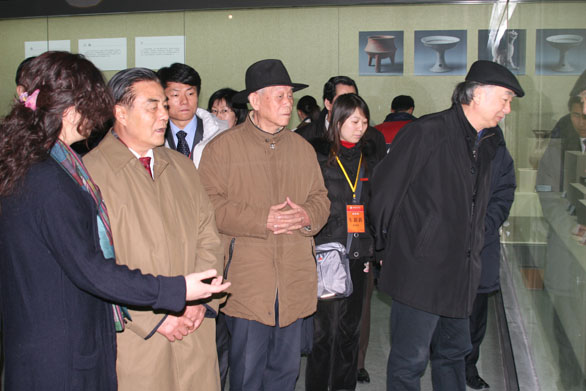 在博物馆,评估专家先后考察了博物馆内的孙长林艺术馆、山东东方中国民艺博物馆、刺绣馆等。在孙长林艺术馆展示给专家的是古代、现代陶瓷及石佛造像,这些完整的序列展示为工艺美术教学提供了丰富的实物资料。在孙长林艺术馆陶瓷展区,名誉院长孙长林先生亲自为专家讲解展品。陶瓷史论研究专家杨永善教授,结合陶瓷展品实物,饶有兴致地向大家讲起了陶瓷制作和陶釉等方面的知识。杨永善教授在青釉双耳罐和汉代一陶瓶面前驻足良久,说这种结构的造型在全国非常少见。在一组陶俑面前杨永善教授说:“这组陶俑造型姿势都非常讲究。”在山东东方中国民艺博物馆中,专家参观考察了该馆多年来收藏中国农耕时代传统民间生活器用,所展物品,强调衣、食、住、行、用的生活方式理念。领导专家对丰富的馆藏大为赞叹。