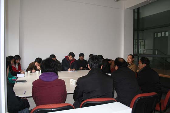 赵进副院长首先对本院的评估工作做了总体汇报。视觉传达设计学院评建档案,如教案、教学日历等基本准备就绪。多媒体课件完成得较好,电子作业大部分已经收集,本学期的作业正在收集整理。每次教学会议都对教师强调教学评估的重要性,对教师提出明确的要求要求。学生方面,从教学环境和学风建设方面做了一些工作。陈军副书记作了补充汇报,学院对教学评估工作做了详细任务分工,教师根据分工,完成得比较好;准备举办学生干部培训班,使学生充分了解整个评估工作。最后教师代表曲展结合评建过程中教风和学风的改变、师生之间的互动交流等方面充分表达了教师对评建工作的理解和大力支持。