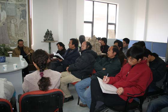 造型艺术学院陈飞林院长首先针对本院的教学工作和评建工作作了总体汇报。造型艺术学院专家多、教授多,绘画和雕塑专业自建校之初就有,见证了学校成长和发展的历史。教学管理方面,任课教师能够严格按照学校要求认真上课,学生对上课的情况反映良好。教学评建方面,新进教师带来各自母校的优良学风,为评建工作顺利开展起了很好的作用。学生管理方面,入住新校区以来,党总支书记和辅导员做了大量工作,开展了一系列活动,取得了良好的效果。实验室建设全面启动,一个月后部分可以投入使用。然后教学秘书张晓宁对评建工作作了具体汇报。造型艺术学院重视评建工作,每个指标专人负责,责任到人,建立了良好的教学管理机制,保证了教学质量。“人人都是得分手,处处都是得分点,天天都是得分时”、“评建工作与每个人息息相关”的意识,在造型艺术学院深入人心。团总支副书记李希进就学生工作作了汇报,并提出了存在的问题和今后的努力方向。