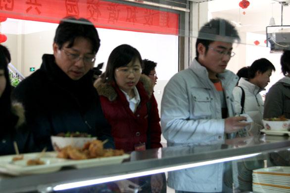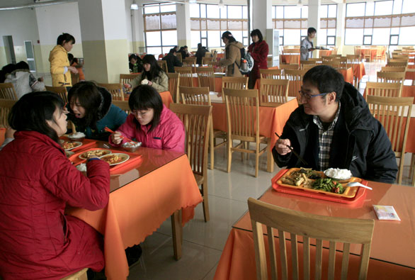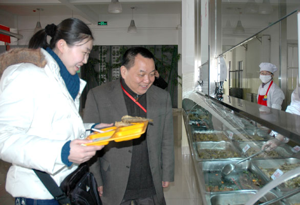 评估专家考察学生食堂与学生共进午餐 [附图]