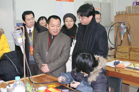 12月23日下午,教育部评估专家组组长、清华大学美术学院杨永善教授,评估专家组副组长、南京艺术学院副院长刘伟冬教授,专家组成员、中央美术学院设计学院副院长许平教授,专家组成员、四川大学艺术学院院长黄宗贤教授,专家组成员、云南大学艺术与设计学院院长李森教授,专家组秘书朱洪春、张勇一行7人对永利官网特种工艺实验中心进行了现场考察。永利官网党委书记于茂阳,院长