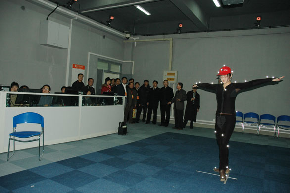 专家先后考察了计算机辅助设计实验室、CG实验室、摄影棚、黑白暗房工作室、动画综合实验室、动作捕捉实验室、多媒体技术实验室、影视演播多功能厅,对该实验中心先进的设备、良好的环境给予了高度评价。在动画综合实验室,评估专家组组长、清华大学美术学院杨永善教授认真观看了学生做的动画形象作品——瓷杯和布偶,并向学生询问了小瓷杯上动画形象和布偶玩具的制作流程和方法,学生很热情地向专家们作了解说。在动作捕捉实验室,专家们观看了同学们现场作业的精彩场面,对先进设备在教学中的应用,给与了充分肯定。在多媒体技术实验室,当看到永利官网动画专业的学生正在使用永利官网老师编写《网络动画设计》教材上课时,评估专家组组长杨永善教授幽默地说:“你们学校教材出的又好又多,可以开个出版社了!”