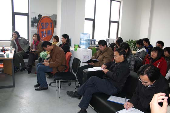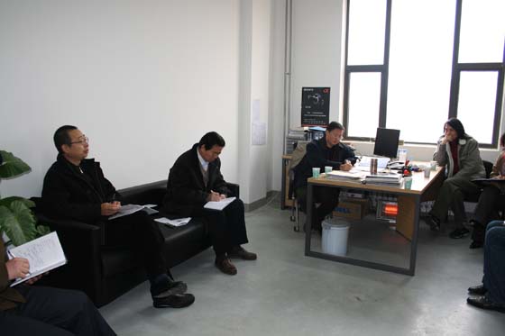 王传东副院长结合教学评建工作,从教师“以老带年轻”、教师集体备课、教学督导日常化、实验室建设与搬迁、学生信息反馈制和教学观摩比赛等几个方面进行了汇报。黄美玉副书记介绍了教学评建工作的一些具体做法。学院把提高教学质量作为教学工作的重点,狠抓教风和学风,学院每天的第一件事就是教学督导。除了配合职能部门对学生加强管理之外,学院也非常注重学生的自我管理。学院正在强化教学文件的规范建设,为每一位老师建立文件夹,教学日历、教案及老师的授课情况一起整理存放。老师开课前将教案、教学日历发给班长,并张贴在教学信息栏。学生作业原件与光盘统一存留。