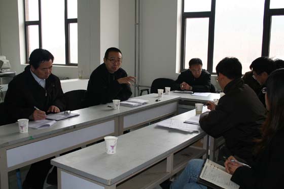 张从军院长就人文艺术学院自评建工作开展以来发生的变化做了汇报。主要内容是教学管理更加规范化,教学文件更加齐备,教师责任心普遍增强,全院教师间、学生间、师生间的凝聚力得到切实加强。党总支来罗军书记从评建工作的思想认识和发动情况、材料的准备情况、评建工作带来的积极变化、存在的问题和今后的工作安排五个方面介绍了人文艺术学院的评建工作。