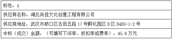 标包A:湖北尚佳文化创意工程有限公司(81.0、82.0、89.5)、山东东华世嘉建筑装饰工程有限公司(81.58、82.08、83.08)、山东信世建筑安装有限公司(78.56、78.56、82.06)