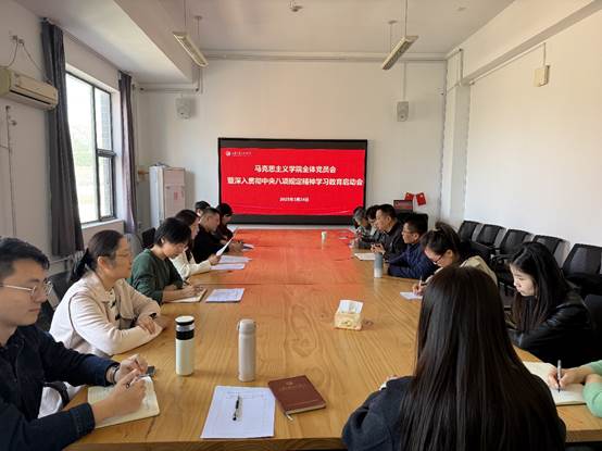 为贯彻落实党的二十届三中全会部署,巩固拓展学习贯彻习近平新时代中国特色社会主义思想主题教育成果,巩固深化党纪学习教育成果,锲而不舍落实中央八项规定精神,推进作风建设常态化、长效化,3月24日,马克思主义学院召开全体党员会暨深入贯彻中央八项规定精神学习教育启动会。会议由马克思主义学院副书记、副院长张晓宁主持,学院全体党员教师参加。