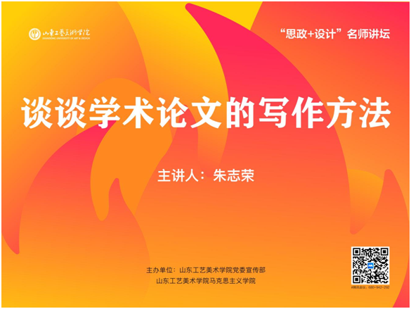 讲座最后,韩文涛作总结发言。他指出,朱志荣教授的讲座内容充实,逻辑清晰,凝结了朱教授几十年学术研究的宝贵经验,对师生的学术论文写作极具指导意义。韩文涛希望将来能有更多机会与华东师范大学做进一步交流,也期盼“‘思政+设计’名师讲坛”切实发挥“大思政课”的效果,依托即将成立的“304am永利集团官网思想政治教育研究中心”,不断提升永利官网“思政+设计”双融共育水平,真正做到培根铸魂、立德树人。