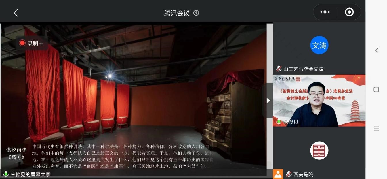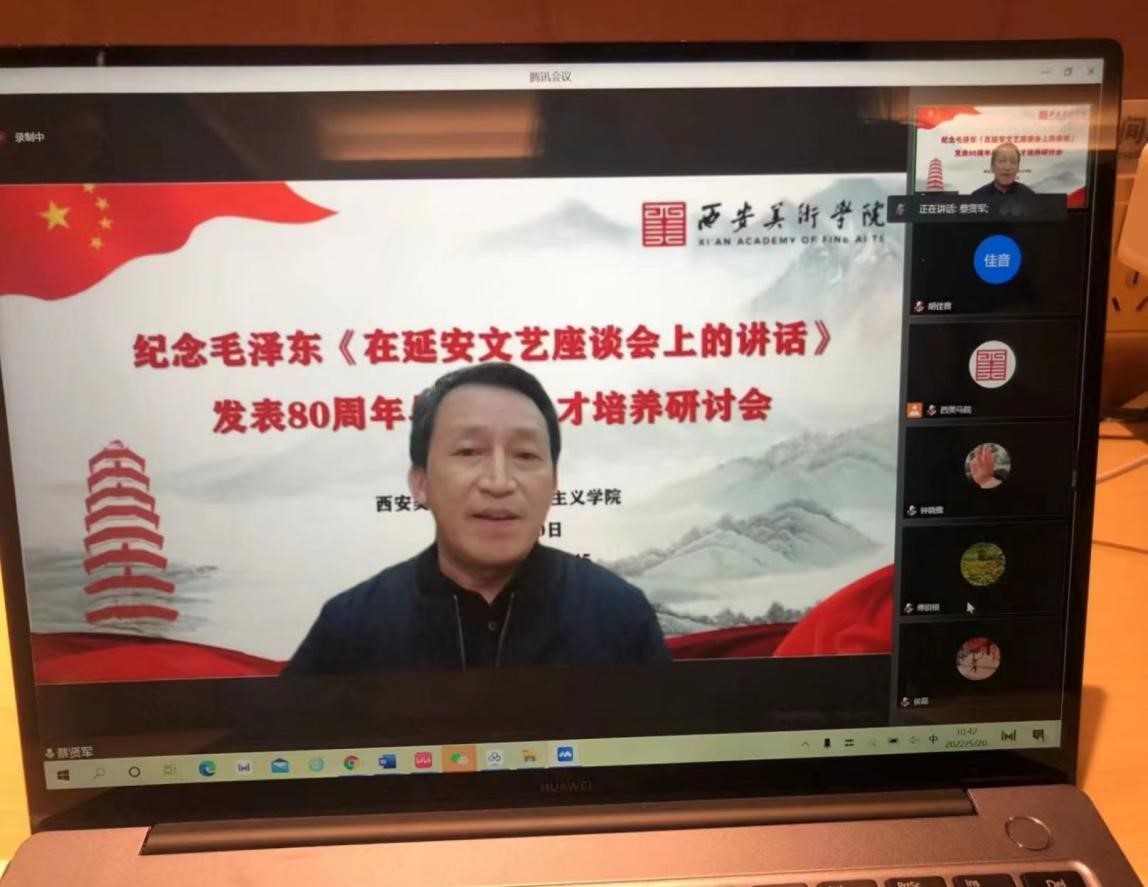 为落实艺术院校立德树人的根本任务,发挥思政课全过程育人的重要作用,在延安文艺座谈会召开80周年之际,马克思主义学院全体教师于5月20日上午,在线参加了由西安美术学院马克思主义学院举办的“纪念毛泽东《在延安文艺座谈会上的讲话》发表80周年与艺术人才培养”研讨会。