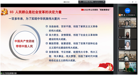 为提升我院青年思政课教师的政治素养和业务能力,马克思主义学院马克思主义基本原理教研室以山东高校思政课2022年度第二场“萌新磨课会”活动为契机,于5月3日晚上召开线上萌新磨课活动。会议由马克思主义基本原理教研室主任梁维科主持,副院长副书记张晓宁及教研室全体教师参加。
