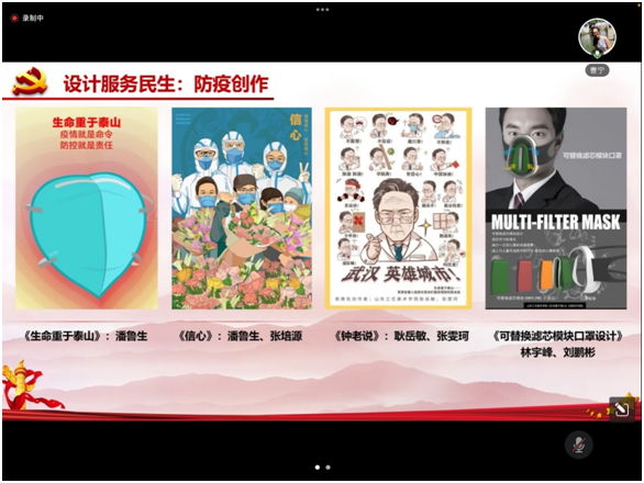 毛泽东思想与中国特色社会主义理论体系概论教研室的曹宁老师,以“建设高质量教育体系”为题,重点讲解了教育本身就是一个民生问题,教育要反哺民生。以院长潘鲁生“设计服务民生”的创新理念、师生们的防疫主题创作和艺术进乡村的社会实践为授课素材,用贴近学生生活的实例,帮助他们理解教育对民生的积极作用,引导他们将自己的求学经历与国家富强、民族振兴相衔接,脚踏实地,奋发图强。