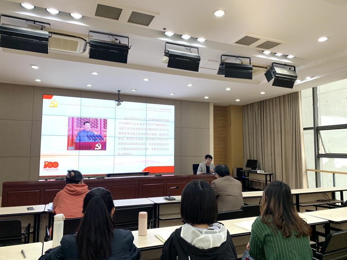 2021年11月4日下午,马克思主义学院开展学习习近平《在庆祝中国共产党成立100周年大会上的讲话》宣讲试讲。丁炳堂主任参加听课,党总支副书记任伟清主持。本次宣讲试讲以学习习近平《在庆祝中国共产党成立100周年大会上的讲话》精神为主题,作为学校党史学习教育专题宣讲活动内容之一。马院教师邢凯、桑伟华承担宣讲任务。