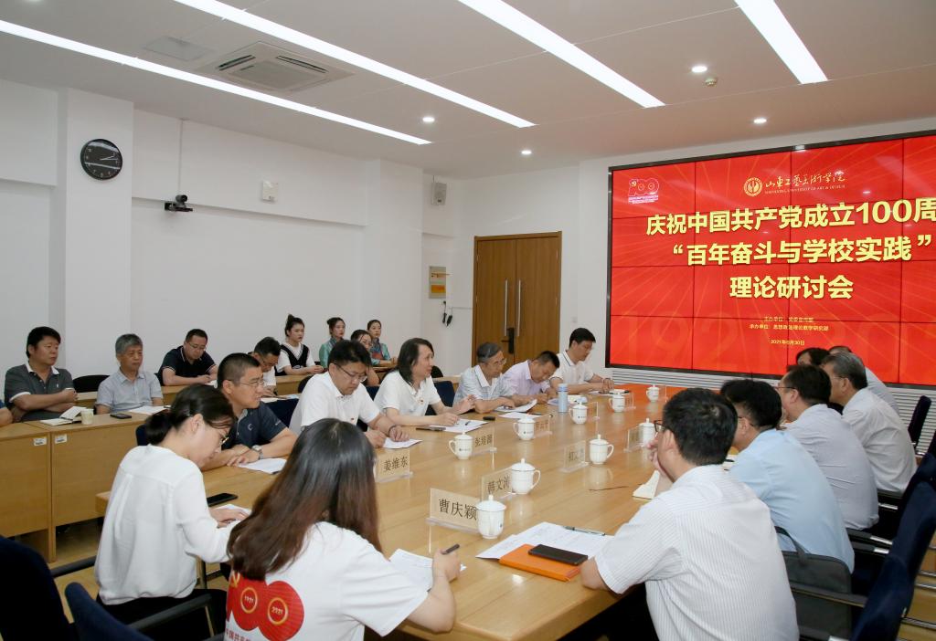 6月30日,在党的百年华诞生日即将到来之际,庆祝中国共产党成立100周年“百年奋斗与学校实践”理论研讨会在长清校区举办。回首过往峥嵘岁月,礼赞党的百年荣光。党委书记何思清出席会议并讲话。党委副书记苗登宇主持会议,党委委员、统战部部长孙大刚,党委委员、宣传部部长韩文涛出席会议。省委党史学习教育第十七巡回指导组副组长齐浚、成员初文杰到会指导。