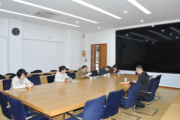 2020年10月26日下午,校党委委员、党委办公室(学校办公室)主任、宣传部长韩文涛,来到联系点思想政治理论教学研究部,开展工作调研。韩部长察看办公室、教研室和资料室后,在第三会议室与思政部同志进行座谈。思政部班子成员丁炳堂、任伟清、张琰以及教研室主任梁维科、金文涛参加。韩部长听完思政部同志工作汇报和意见建议后,就思政部建设、思政课创新、“思政+设计”探索、加强思想政治工作等问题,一边讲话,一边座谈,对思政部和老师们提出要求和希望。