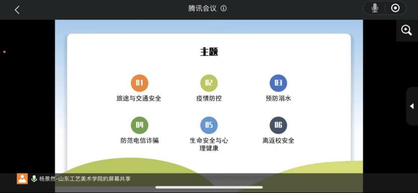 会上,辅导员杨景然从旅途与交通安全、疫情防控、预防溺水、防范电信诈骗、生命安全与心理健康、离返校安全等六个方面分别介绍了假期期间可能遇到的安全问题。她提醒学生们要注意往返途中的交通安全、自觉遵守交通规则,继续保持良好卫生习惯,提升健康素养和防病意识;要求学生们离校时妥善保管好自己的贵重物品,关好门窗、电源,不要贪图小便宜,时刻警惕网上刷单、兼职等各类诈骗,要尊重生命价值,保持积极向上的良好心态等。