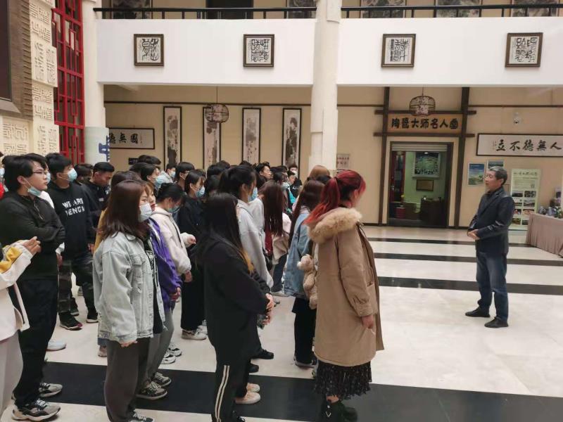 11月13日下午,淄博陶瓷学院团总支书记杨友森组织2020级新生赴博山陶瓷琉璃艺术中心参观学习,院长耿大海现场授课,对新生开展专业通识教育。