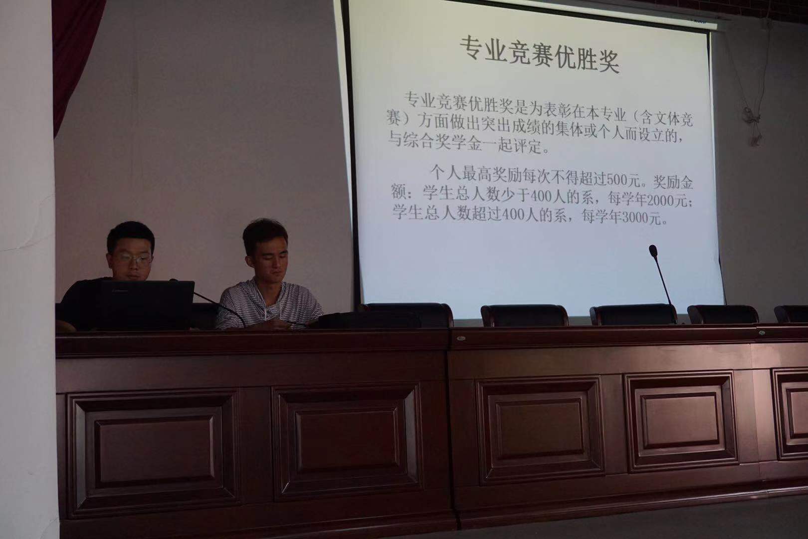 杨友森老师首先就永利官网的奖励及资助体系进行了详细讲解,随后向大家介绍了永利官网资助体系的工作宗旨以及高校经济困难学生认定的方式。并邀请17级优秀学生干部、国家励志奖学金获得者董贺旺就个人的学习经历、学生干部经历以及个人未来计划进行了讲述。讲述过后,杨老师与董贺旺同学现场就新生在学习、生活上的疑问进行了解答。