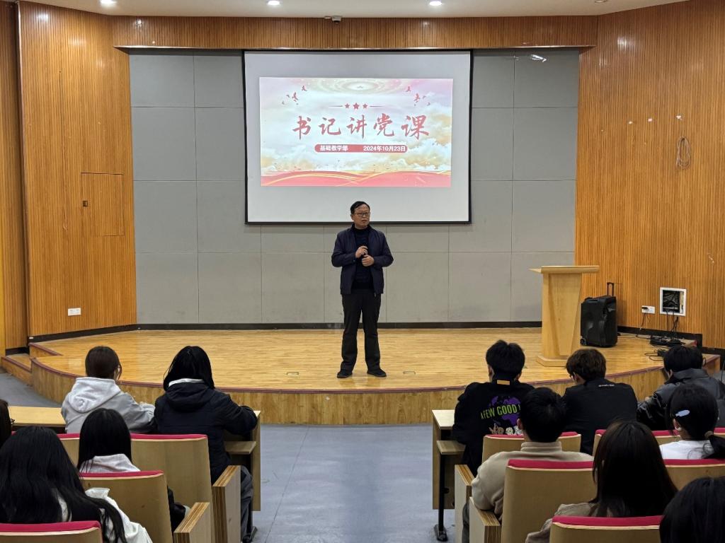 为深入学习贯彻党的二十届三中全会精神,不断提高青年学生政治素养,引导青年学生不忘初心、坚定理想信念。10月23日,基础教学部组织开展“书记讲党课”主题教育活动。本次党课由辅导员徐茜娅主持,基础教学部党委直属党支部书记李忠诚主讲。