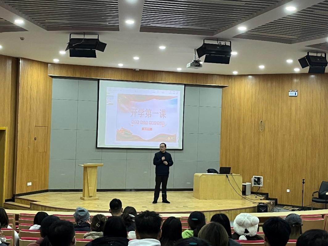 新学期新开始,为深入学习贯彻党的二十大精神,厚植学生爱国情怀、激发奋进力量,2023年2月21日,基础教学部开展2023年春季学期“开学第一课”——学习党的二十大精神专题党课。本次学习由辅导员徐茜娅主持,学校学习贯彻党的二十大精神宣讲团成员、基础教学部党委直属党支部书记李忠诚主讲,基础教学部2022级全体学生参加。