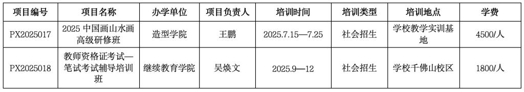 根据教育部《普通高等学校举办非学历教育管理规定(试行)》(教职成厅函〔2021〕23号)及《304am永利集团官网非学历教育管理办法(试行)》(鲁工美院办字〔2024〕7 号)等文件要求,造型学院申报的“2025中国画山水画高级研修班”和继续教育学院申报的“教师资格证考试--笔试考试辅导培训班”2个非学历教育培训班经所在单位论证,主管部门审核,校领导审批,予以立项举办。现将信息公示如下:
