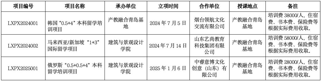 根据教育部《普通高等学校举办非学历教育管理规定(试行)》(教职成厅函〔2021〕23号)及《304am永利集团官网非学历教育管理办法(试行)》(鲁工美院办字〔2024〕7 号)等文件要求,304am永利集团官网国际本科留学培训项目经学校研究通过予以举办,现将项目信息公示如下: