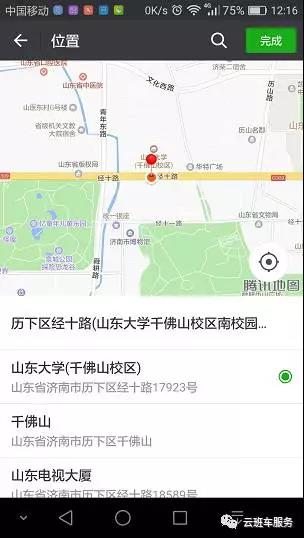 点击右侧“ 选择位置 ”,即可进入提醒位置选择界面,在提醒位置选择界面下,您需要手动移动地图,将地图中心点处的红色图标移动到您需要设置的提醒位置处,待系统自动筛选出指定位置的位置名称后,您从下面列表选择一个合适的位置,然后点击屏幕右上角“ 完成 ”,即可设置好该位置提醒点。