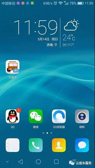 添加到桌面后,效果如下图(本图片采集时为云班车体验版本,正式版尚在微信官方审核中,所以图标上有BETA标识,您正常使用的云班车图标不会有此标识):