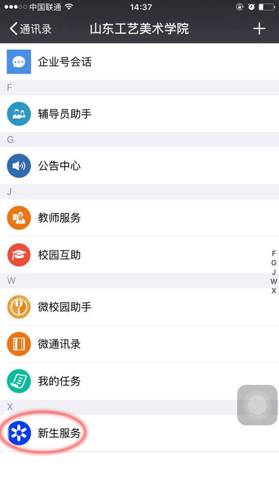 同时,新生可以通过微信服务平台(企业号)里“新生服务”栏目,查看新生入学后的一切事宜。