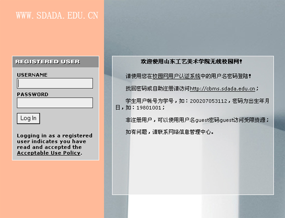 永利官网一期无线校园网采用Web Portal方式认证,当您的笔记本、PDA或者具有Wlan功能的手机连接上SSID为sdada-cq的无线网络时,打开Web浏览器,随便输入一个网址,比如新浪网,将可以看到认证界面,请使用您在校园网用户认证系统中的用户名密码登陆;学生用户账号已提前导入系统,帐号为学号,如:200207053112,密码为出生年月日,如:19801001。