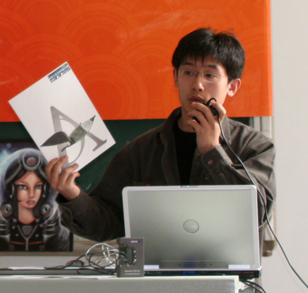 王东在讲座中首先提出了数字时代需要怎样的人才这一问题,针对当前社会对于数字艺术人才的需求,介绍了Adobe认证体系。惠岩通过几个实例,详细讲解了Adobe数字艺术创意设计系列软件的应用。张予通过实际操作,给大家展示了Iullstrator的功能、操作及结合手写板的使用方法。此次讲座持续了近两个小时,讲座过程中还穿插了有奖问答活动,使同学们在欢快的气氛中对Adobe数字艺术及Adobe认证有了更加深入的了解。