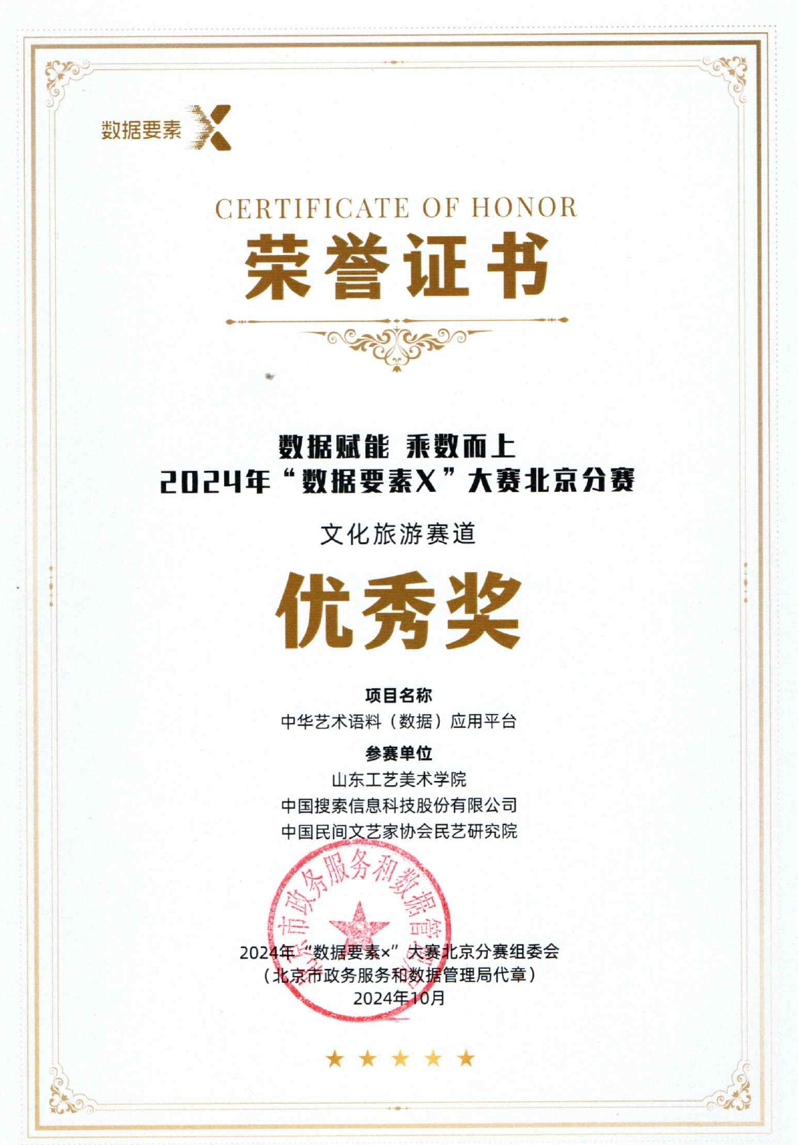 10月9日,2024“数据要素X”大赛北京分赛颁奖典礼在中关村国际创新中心举办。作为全国首个聚焦数据要素开发利用的国家级赛事,大赛吸引了众多高校、科研机构和企事业单位的积极参与,永利官网网络信息管理中心、人工智能设计研究中心与中国搜索信息科技股份有限公司、中国民间文艺家协会民艺研究院共同组建的参赛团队凭借出色的创新能力、扎实的专业功底和紧密的团队合作在激烈竞争中脱颖而出,参赛项目“中华艺术语料(数据)应用平台”获得决赛文旅赛道优秀奖。