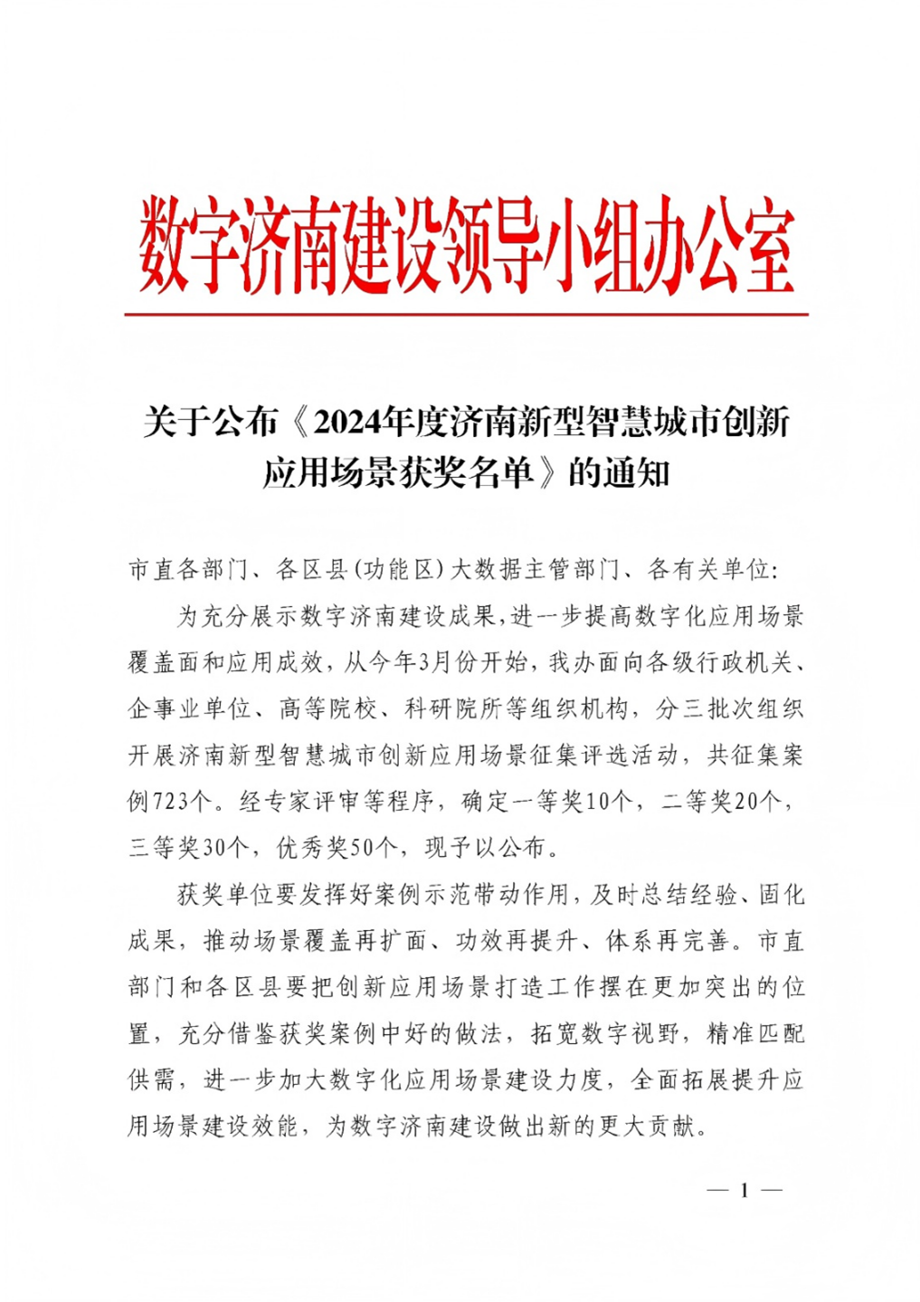 近日,数字济南建设领导小组办公室发布了《2024年度济南新型智慧城市创新应用场景获奖名单》,永利官网报送的《人工智能赋能设计教育改革》荣获三等奖。