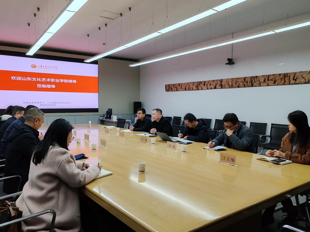 2月18日,山东文化艺术职业学院副院长王萌、纪委书记胡学林一行五人来访永利官网,就信息化建设、人工智能教育应用等事项展开深入交流,永利官网组织部部长、党委(学院)办公室主任弭友海接待来宾并主持座谈会,教务处、网络信息管理中心、人工智能设计研究中心相关负责人参会并汇报交流。