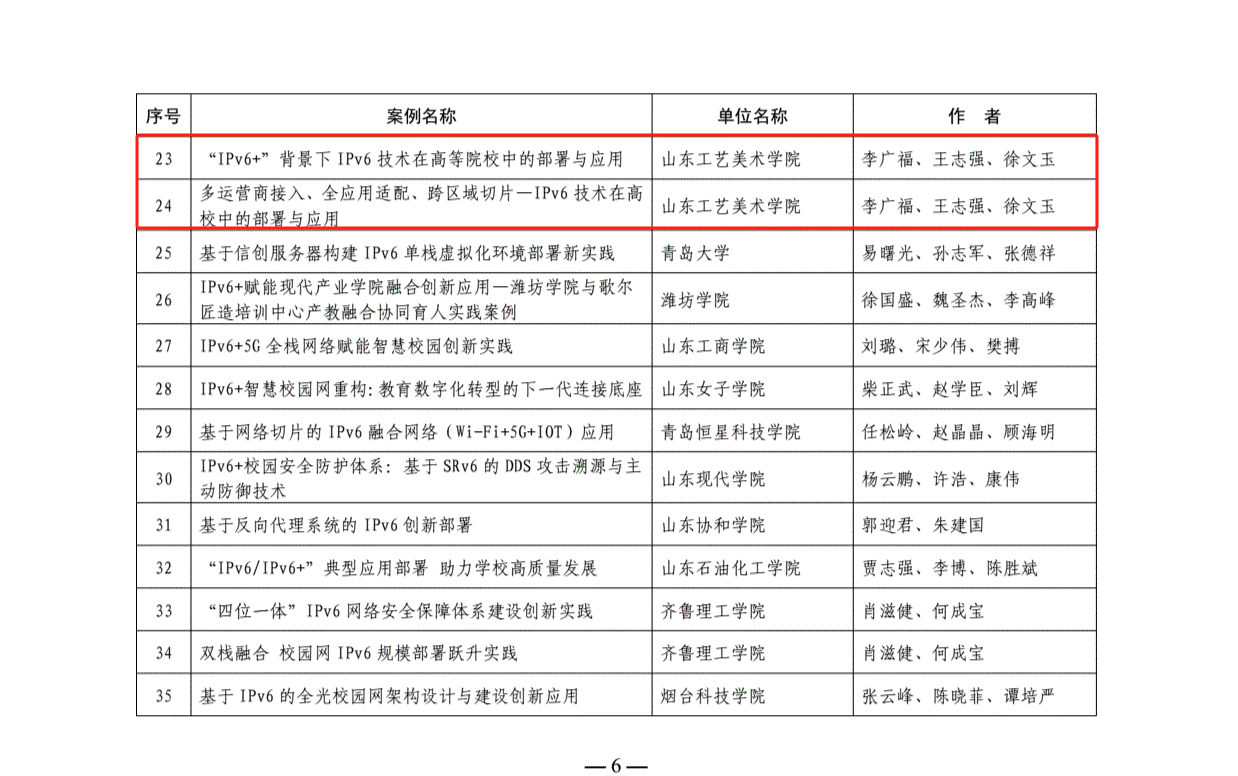 近日,山东省教育厅公布了教育系统“IPv6/IPv6+”典型创新应用案例的评选结果,永利官网报送的2个案例均获选。