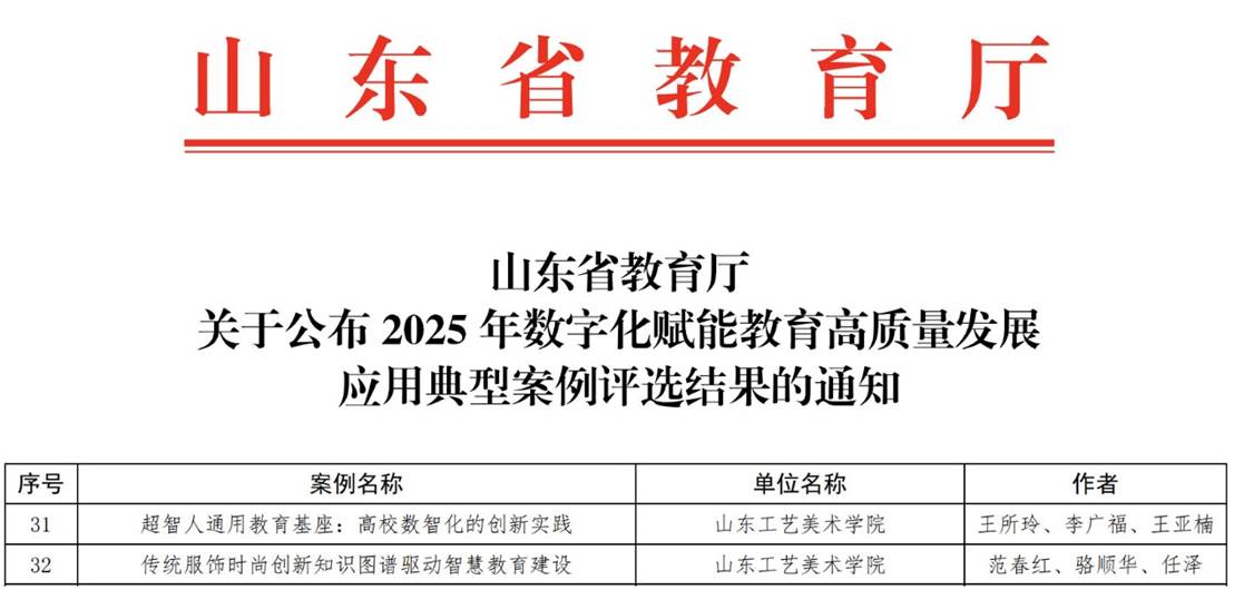 7月17日,山东省教育厅发布《关于公布2025年数字化赋能教育高质量发展应用典型案例评选结果的通知》,永利官网报送的2项案例均成功入选,其中“超智人”案例同时被山东教育卫视《教育纵深》栏目深度报道,为学校数字化转型和教育高质量发展再添殊荣。