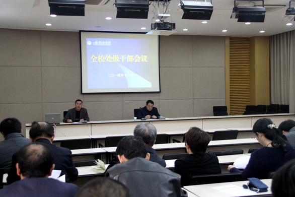 学校召开处级干部会议 11月24日下午,学校在长清校区第一会议室召开全体处级干部会议,党委副书记杨新力出席会议并讲话。