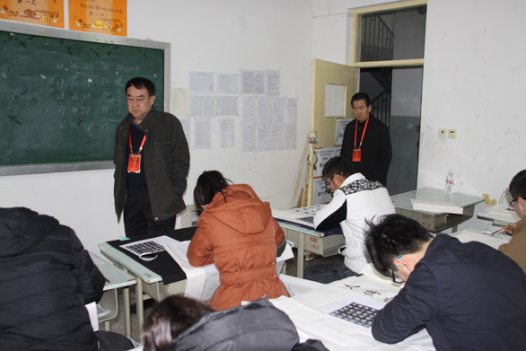 校领导视察应用设计学院分院考点书法类考试现场 2月28日,党委副书记杨新力,应用设计学院分院考点总监考刁在祥来到应用设计学院分院考点,视察书法类考试现场。
