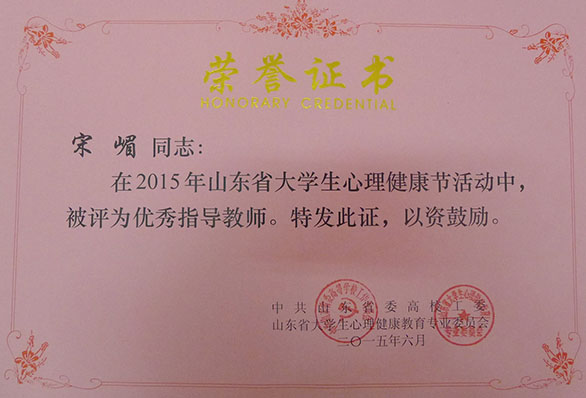 永利官网在2015年山东省大学生心理健康节中喜获佳绩 6月15日,山东省大学生心理健康教育专业委员会2015年学术年会在山东大学举行,山东省委高校工委副书记黄琦、宣教处处长刘欣堂、专委会成员以及全省98所高校的140余名代表参加了会议。