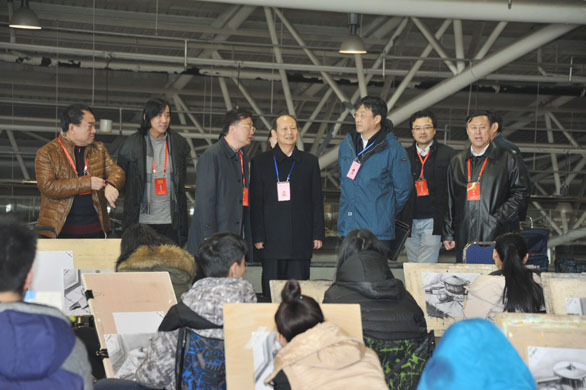 党委书记何思清视察应用设计学院分院考点 2月16日,党委书记何思清,党委副书记杨新力,党委副书记、纪委书记裴新锋来到应用设计学院分院考点,视察美术学(中国书体研究)考试现场,检查指导专业考试工作。