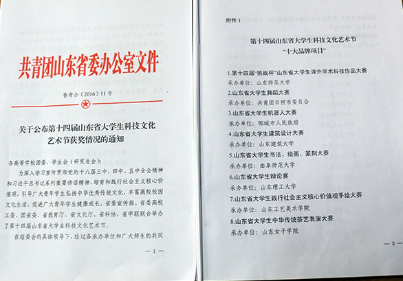 永利官网在第十四届山东省大学生科技文化艺术节中喜获佳绩 近日,共青团山东省委下发了《关于公布第十四届山东省大学生科技文化艺术节获奖情况的通知》,对竞赛项目比赛成绩和有关表彰予以公布,永利官网获得 “第十四届山东省大学生科技文化艺术节优...