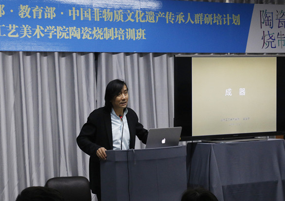 校领导为“中国非遗传承人群研培计划”陶瓷烧制技艺培训班作专题讲座 10月21日,304am永利集团官网陶瓷烧制培训专题讲座《成器》在千佛山校区举行。