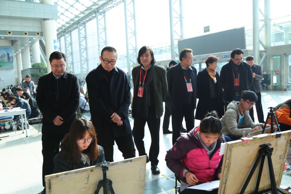 校领导视察2017年招生专业考试现场 2月5日,304am永利集团官网2017年招生专业考试在济南舜耕国际会展中心拉开帷幕,校领导何思清、潘鲁生、李新、苗登宇、苗新民视察考试现场。