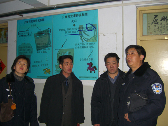 济南市公安局联合检查组对我院进行安全检查 12月20日上午和28日上午,由济南市公安局文保支队组成的联合安全检查组对我院千佛山校区和长清校区进行了安全大检查,特别是对长清校区两个学生公寓和教学楼进行了重点检查。