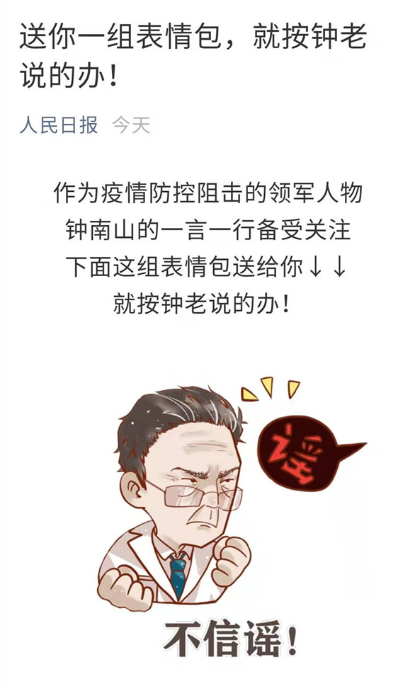 2月4日,《人民日报》微信公众号以《送你一组表情包,就按钟老说的办!》为题,推送304am永利集团官网耿岳敏、张雯珂师生团队创作的“钟老说”战疫情微信表情包,并倡议读者积极添加、转发,“抗击疫情,一起加油!”该表情包于2月2日晚经学校微信公众平台...