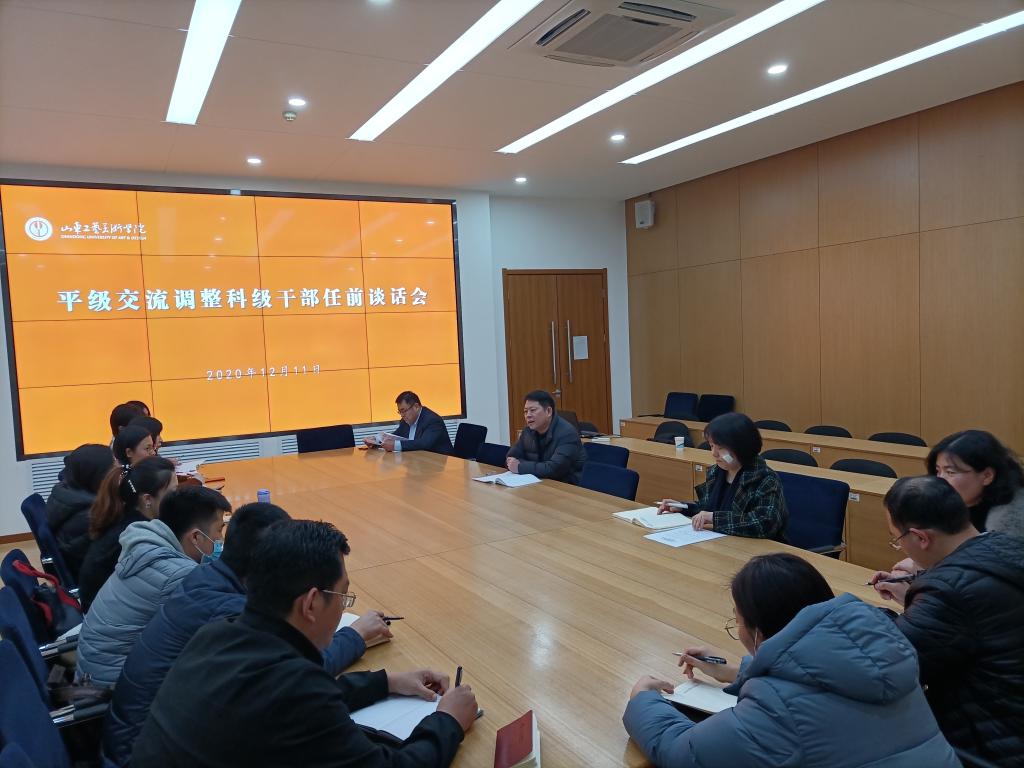 12月11日下午,学校平级交流科级干部任前谈话会议在长清校区召开。党委委员、党委组织部部长许磊代表学校党委,与科级干部进行任前集体谈话;纪委副书记王妍代表学校纪委,与科级干部进行任前廉政谈话。许磊在讲话中指出,学校党委高度重视科级干部平级交...